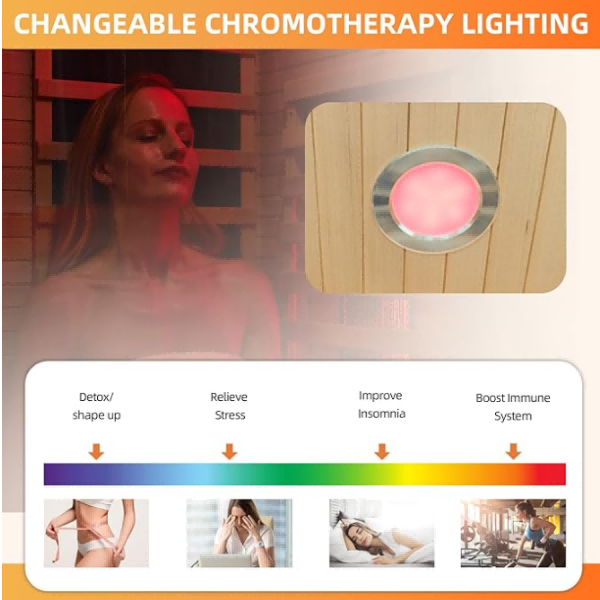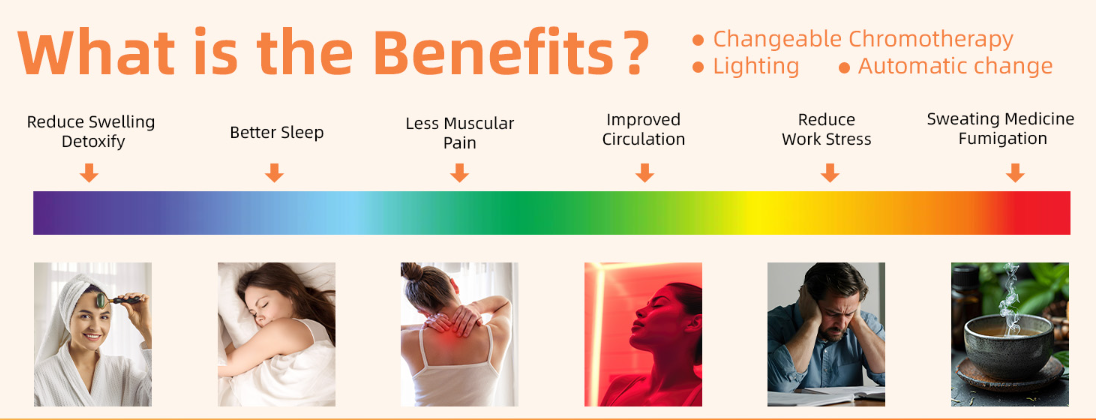 Használat esetén a távoli infravörös sugárzás elősegítheti a vérkeringést, felgyorsíthatja az anyagcserét, enyhítheti az izom fáradtságát, és elősegítheti a testből származó nedvesség és anyagcsere-hulladékok kiküszöbölését, különösen az ülő emberek, a sport rajongók és azok számára, akik figyelnek a napi egészségre. A hagyományos szaunákhoz képest kevesebb energiát fogyaszt (kb. 800-1200W teljesítményű), gyorsan felmelegszik (10 perc alatt eléri a beállított hőmérsékletet), és nem igényel komplex vízelvezető rendszereket. A napi karbantartás egyszerű, biztosítva a modern Urbanites kényelmes és hatékony otthoni egészségügyi megoldást.