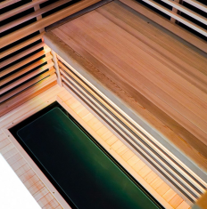 A szauna kiemelkedő tulajdonsága a kettős fűtési rendszer. A távoli infravörös fűtőelemek mély behatolást tesznek lehetővé, belülről kifelé melegítve a testet, elősegítve a vérkeringést és a méregtelenítést. A kiegészítő fűtési rendszer biztosítja a gyors hőmérséklet-emelkedést, lehetővé téve, hogy a szauna rövid időn belül elérje a kívánt hőmérsékletet. Ez a kombináció nem csak növeli a fűtési hatékonyságot, hanem fenntartja az egyenletes hőmérséklet-eloszlást is, kiküszöbölve a hideg foltokat.