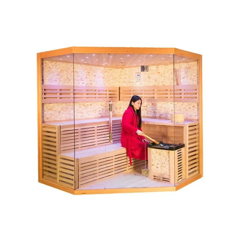 Ez a háromoldalas üvegből készült intelligens vezérlőrendszerrel ellátott Hemlock szauna a prémium anyagokat, az átlátszó kialakítást, az intelligens vezérlést és a biztonsági garanciákat egyesíti magában, aprólékos kidolgozással az alapvető alkatrészektől a részletes tartozékokig. Akár otthoni privát pihenőhelyként, professzionális szaunázási élményekhez, elfoglalt idők közepette, akár kereskedelmi környezetben, például szállodákban, SPA-klubokban és fitneszközpontokban használjuk a magas színvonalú szolgáltatások nyújtására, tökéletesen megfelel a különféle igényeknek – kényelmes, egészséges és professzionális szaunázási élményt teremtve Önnek.